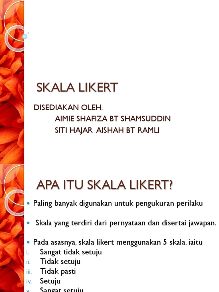 Skala likert sebagai skala penilaian skala likert kerap digunakan sebagai skala penilaian karena memberi nilai terhadap sesuatu.