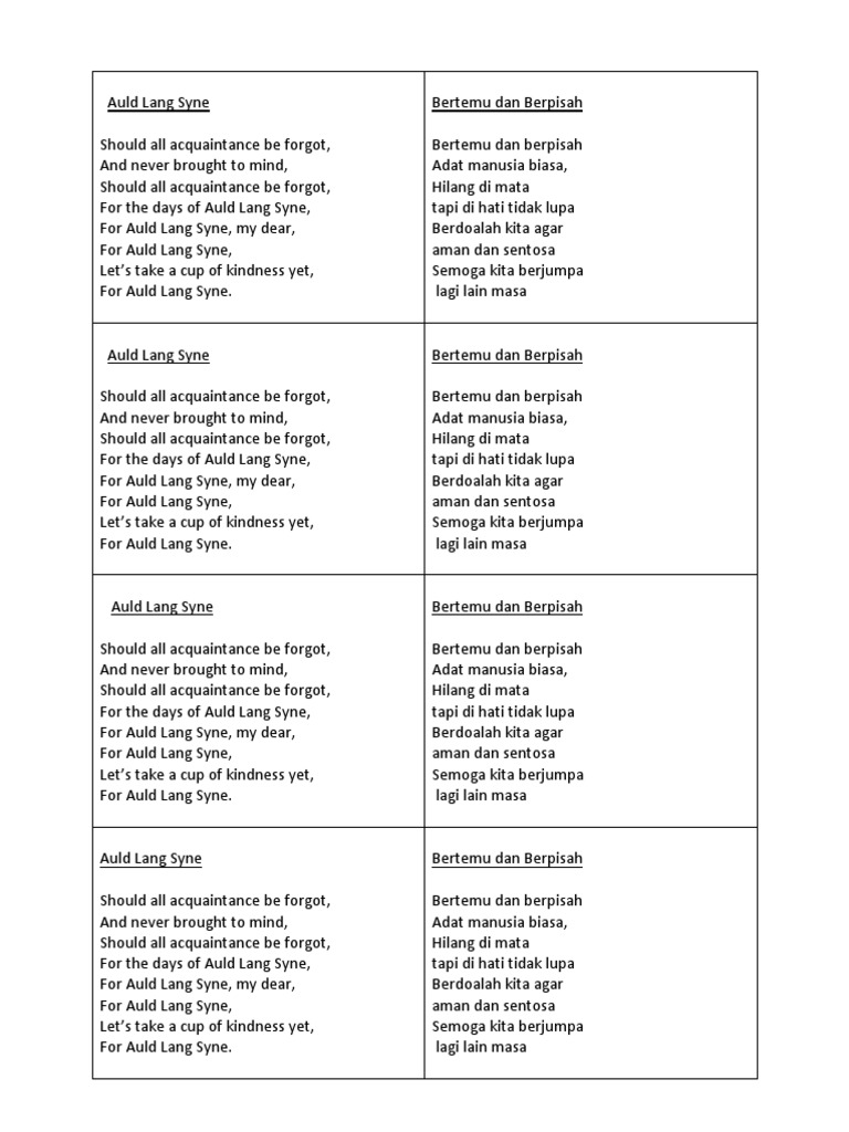 Lirik bertemu dan berpisah (auld lang syne).